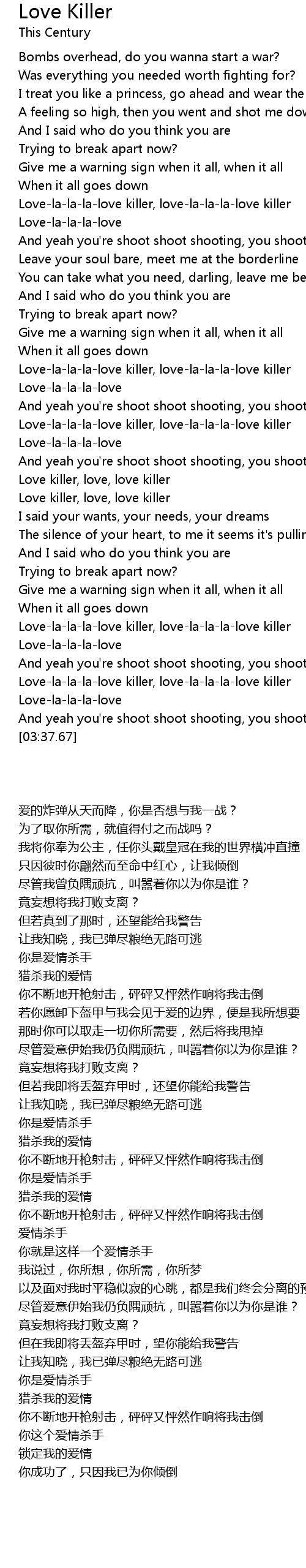 Love-la-la-la-love killer, love-la-la-la-love killer |