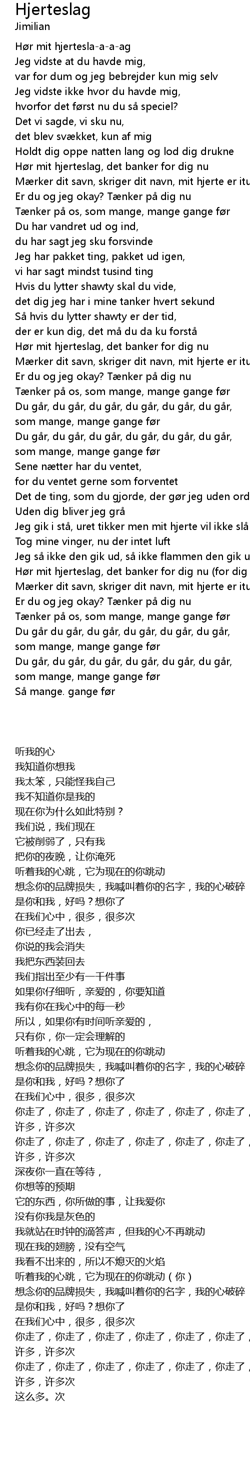 | [02:29.02] | Mærker dit savn, skriger dit navn, mit hjerte er itu |