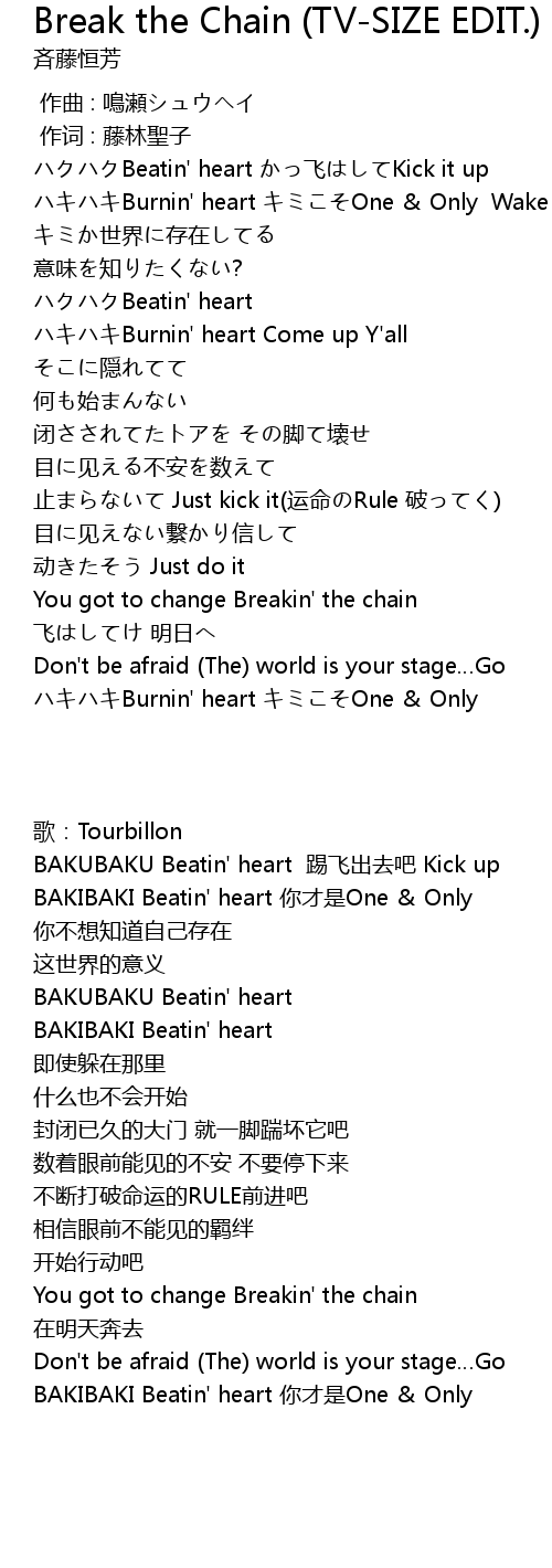 | Song | Break the Chain (TV-SIZE EDIT.) |