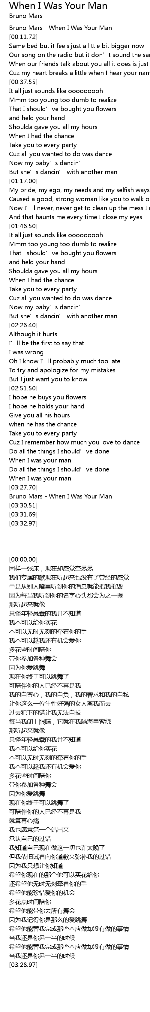 | [00:00.00] | Bruno Mars - When I Was Your Man |