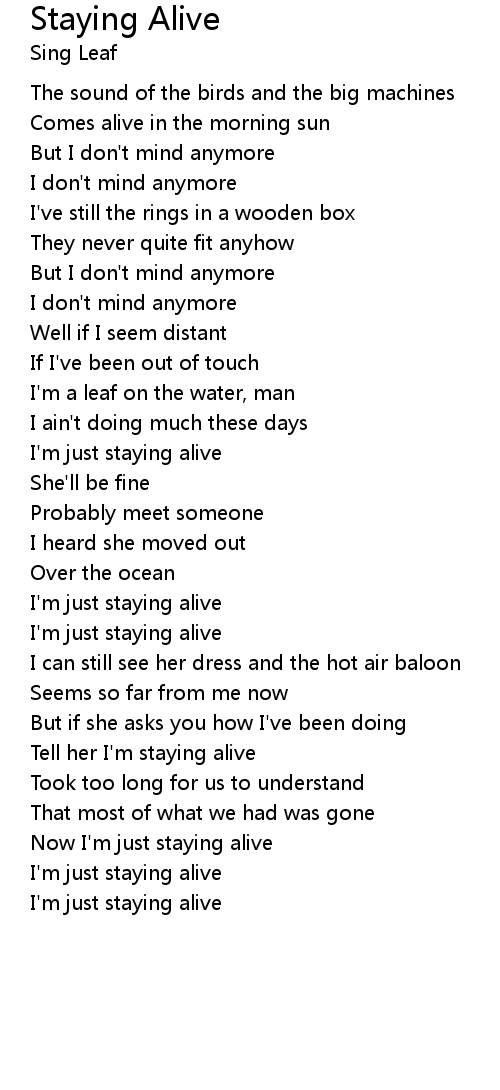 Now I'm just staying alive |