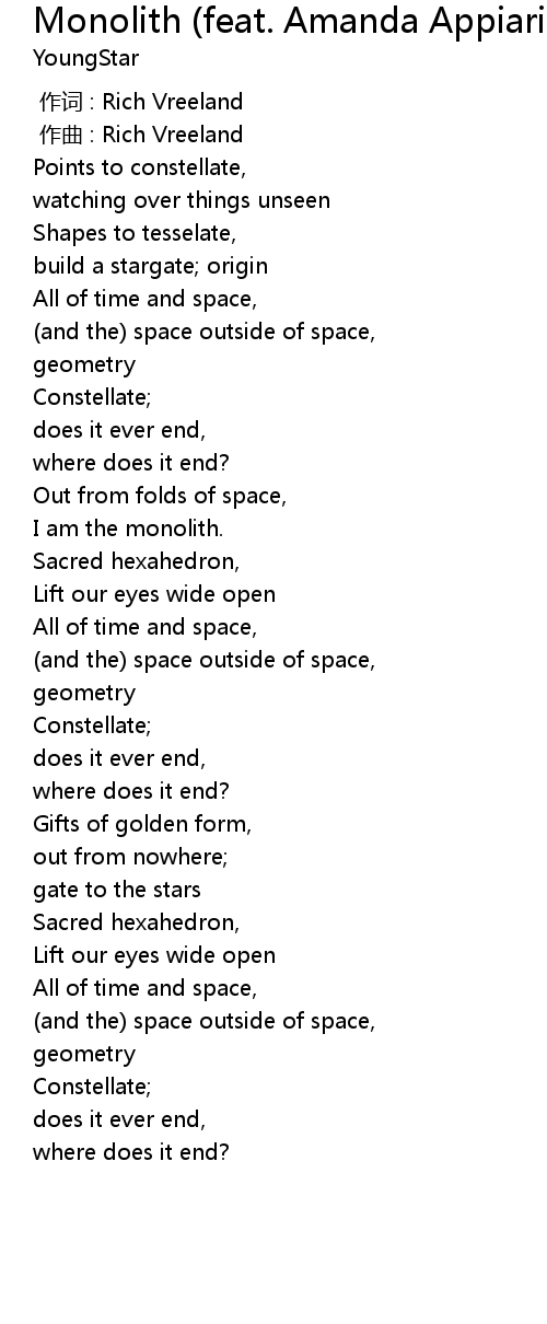 | [01:21.65] | I am the monolith. |