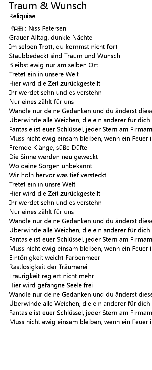 | [00:19.86] | Staubbedeckt sind Traum und Wunsch |