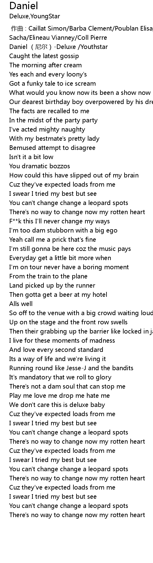 | [00:00.00] | Daniel ní ěr Deluxe Youthstar |