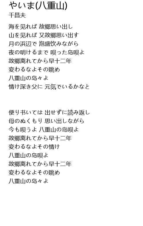 | 八重山の岛々よ |