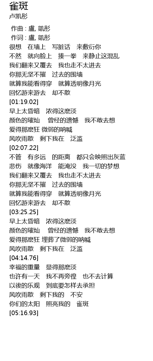 | [00:00.00] | 作曲 : 盧, 凱彤 |