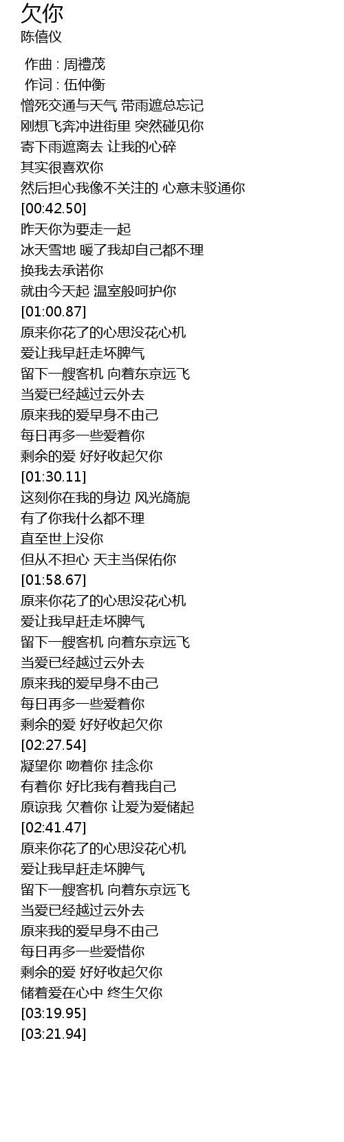 | [03:12.60] | 储着爱在心中 终生欠你 |
