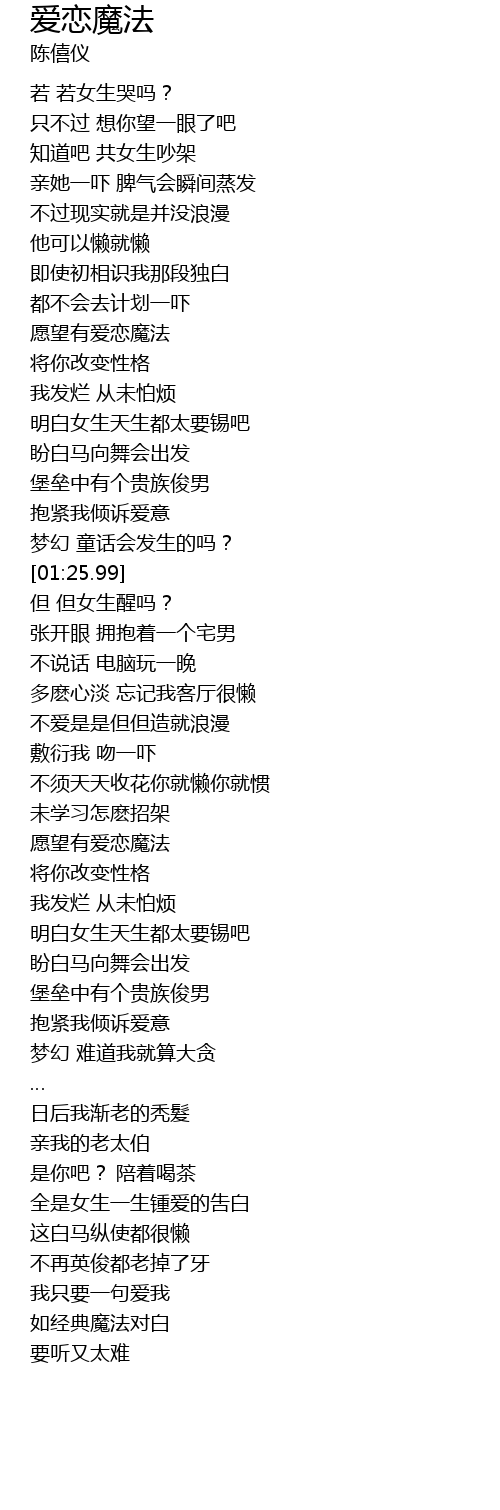 | [01:19.42] | 梦幻 童话会发生的吗? |