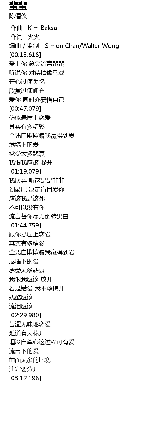 | [00:10.618] | biān qǔ jiān zhì: Simon Chan Walter Wong |