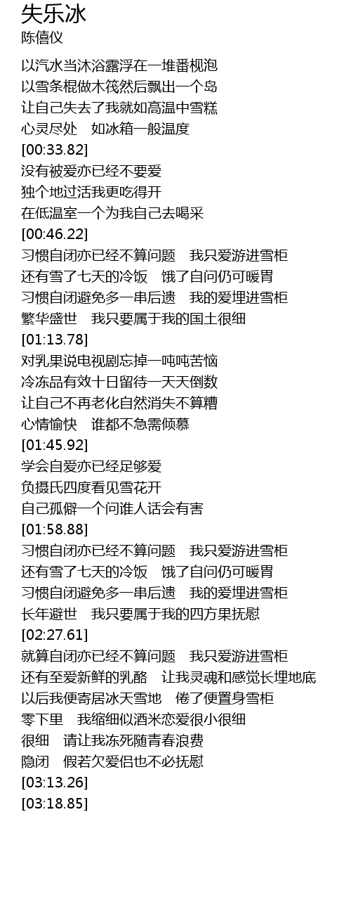 | [02:47.59] | 以后我便寄居冰天雪地 倦了便置身雪柜 |