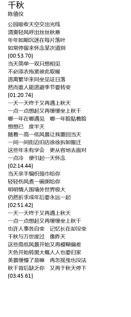 | [00:41.44] | 年年如期沉迷在每片落叶 |