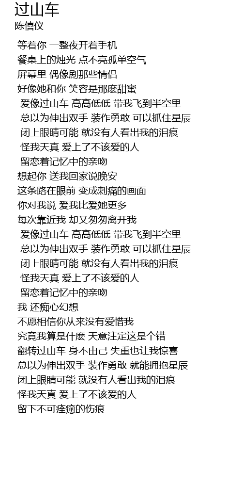 | [00:43.779] | 爱像过山车 高高低低 带我飞到半空里 |