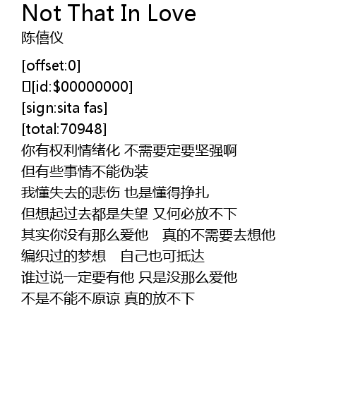 | [00:34.462] | 其实你没有那么爱他 真的不需要去想他 |