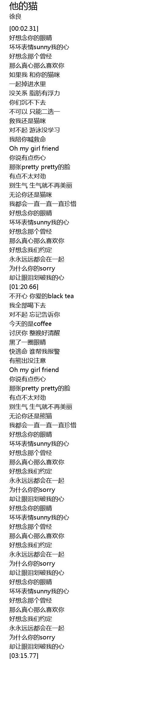 | [02:31.04] | 坏坏表情sunny我的心 |
