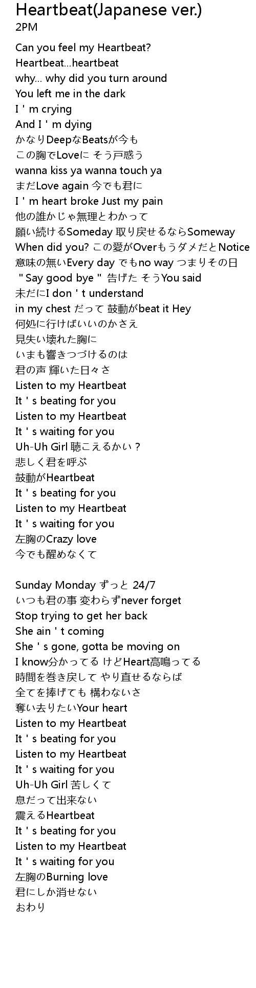 | in my chest だって 鼓動がbeat it Hey | |