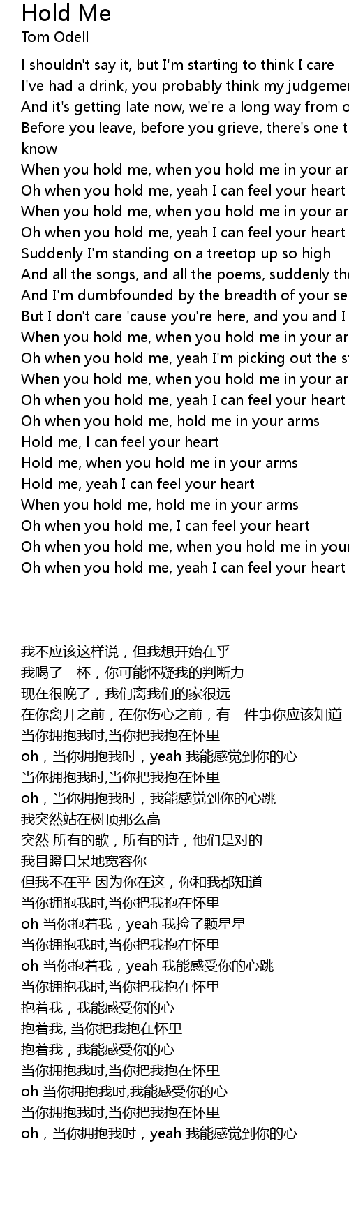 Oh when you hold me, yeah I can feel your heart |