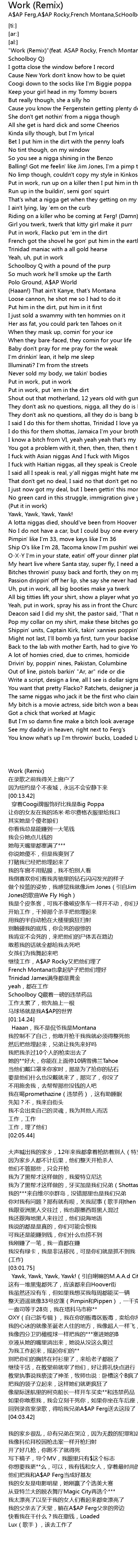 "Work (Remix)"(feat. ASAP Rocky, French Montana, Trinidad James & Schoolboy Q) |