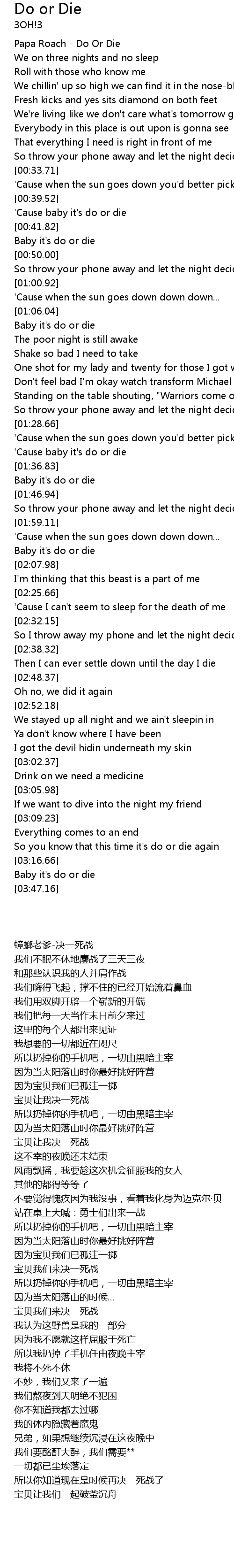 | [02:41.32] | Then I can ever settle down until the day I die |