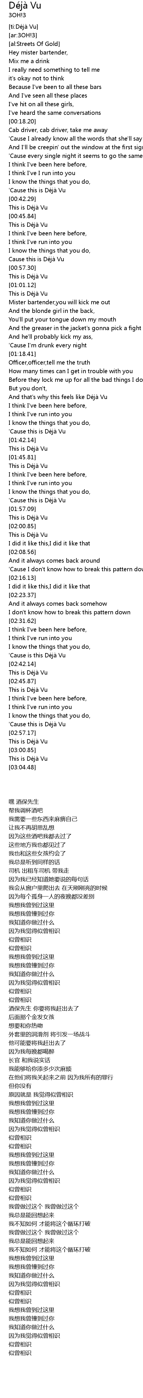 | [03:02.91] | This is De ja Vu |