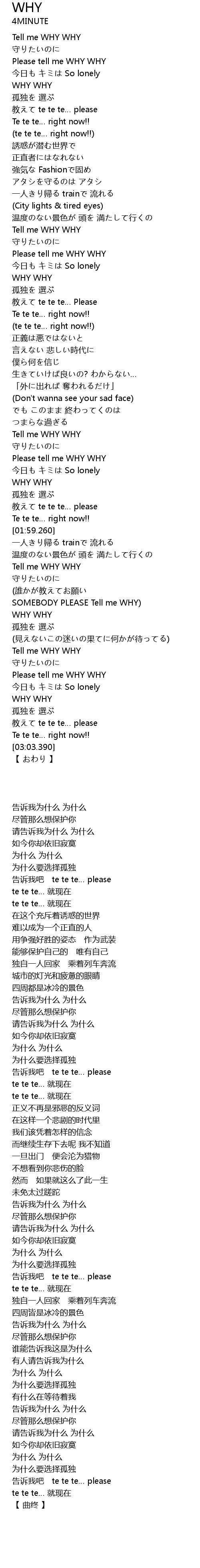 | [02:39.080] | SOMEBODY PLEASE Tell me WHY |