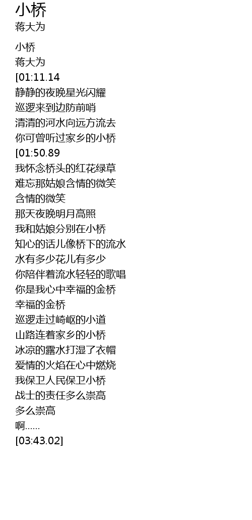| [03:00.43][01:50.89][00:40.86] | 啊...小桥啊 |