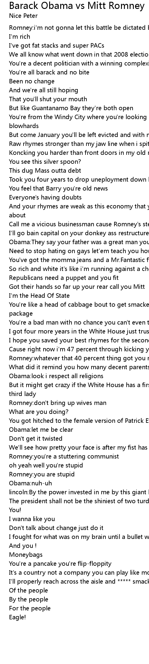 And your rhymes are weak as this economy that you've done nothing about |