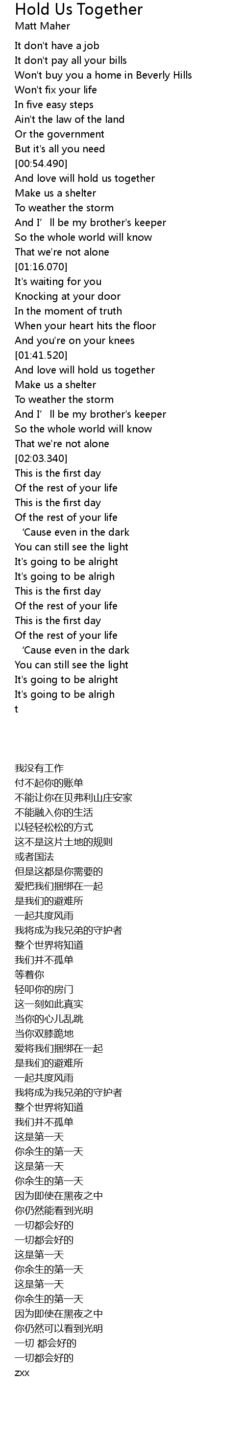 | [01:41.880] | And love will hold us together |