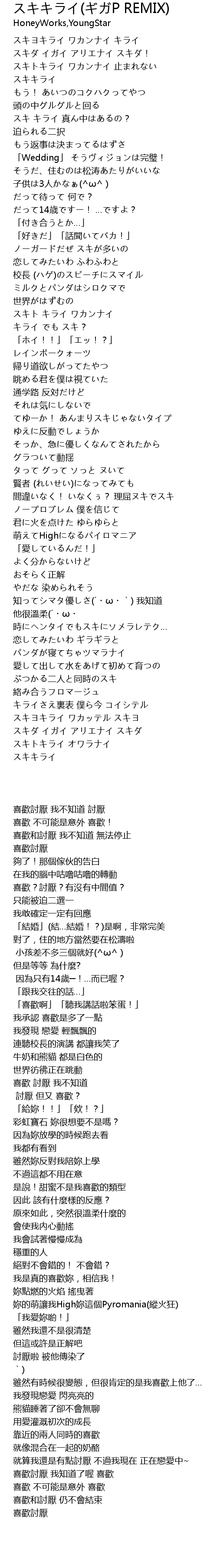 | [00:02.79] | スキヨキライ ワカンナイ キライ |