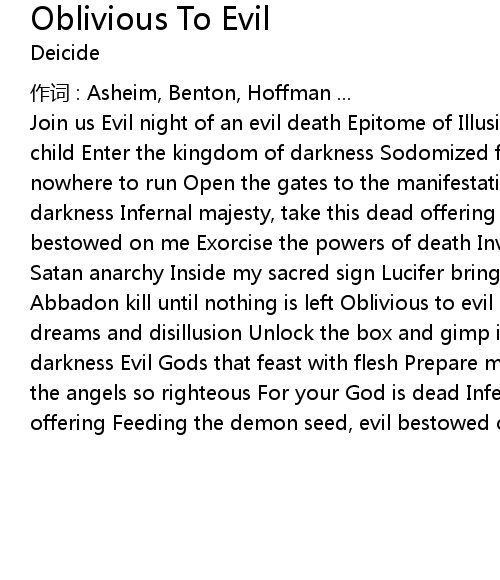 | Song | Oblivious To Evil |