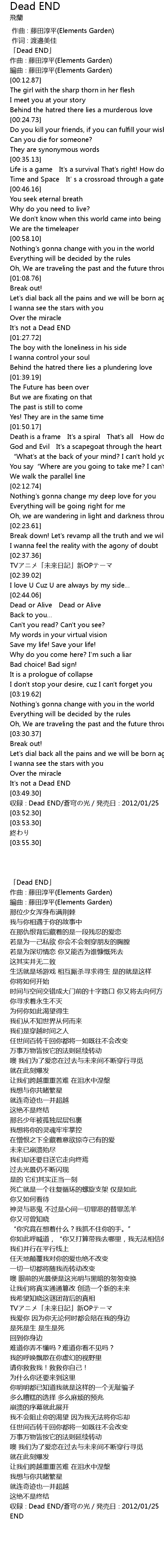 | [03:50.30] | shōu lù Dead END cāng qióng guāng fā mài rì 2012 01 25 |