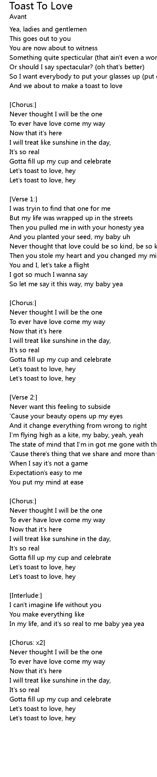 Toast To Love Lyrics