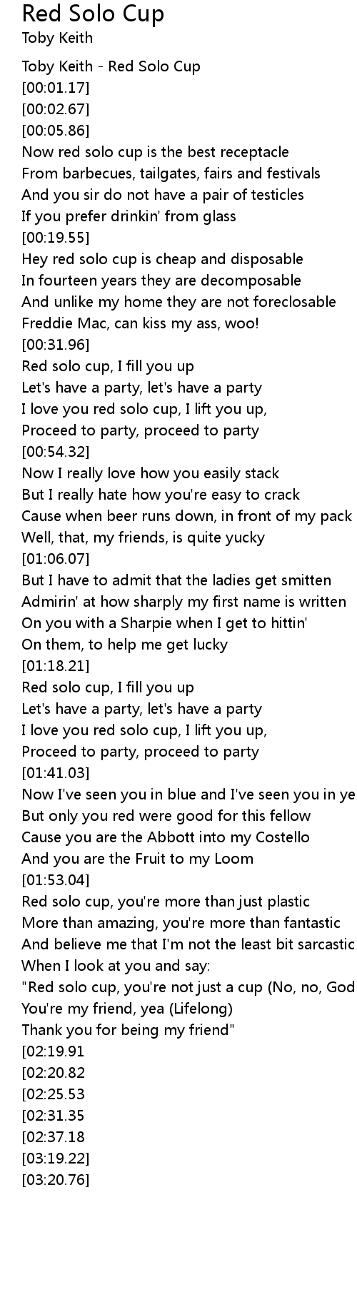 I love you red solo cup, I lift you up, |