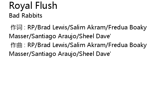 | [00:00.000] | 作曲 : RP/Brad Lewis/Salim Akram/Fredua Boakye/Graham Masser/Santiago Araujo/Sheel Dave' |