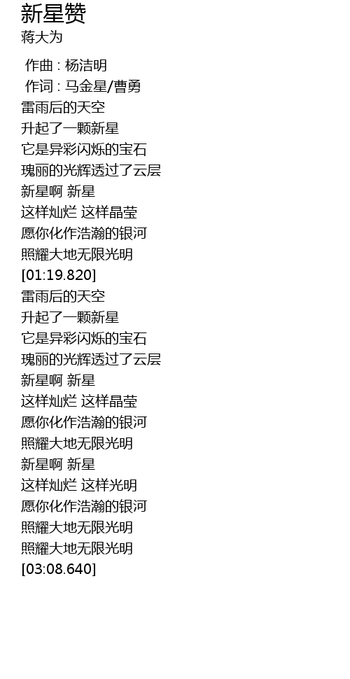 | [02:33.580] | 新星啊 新星 |