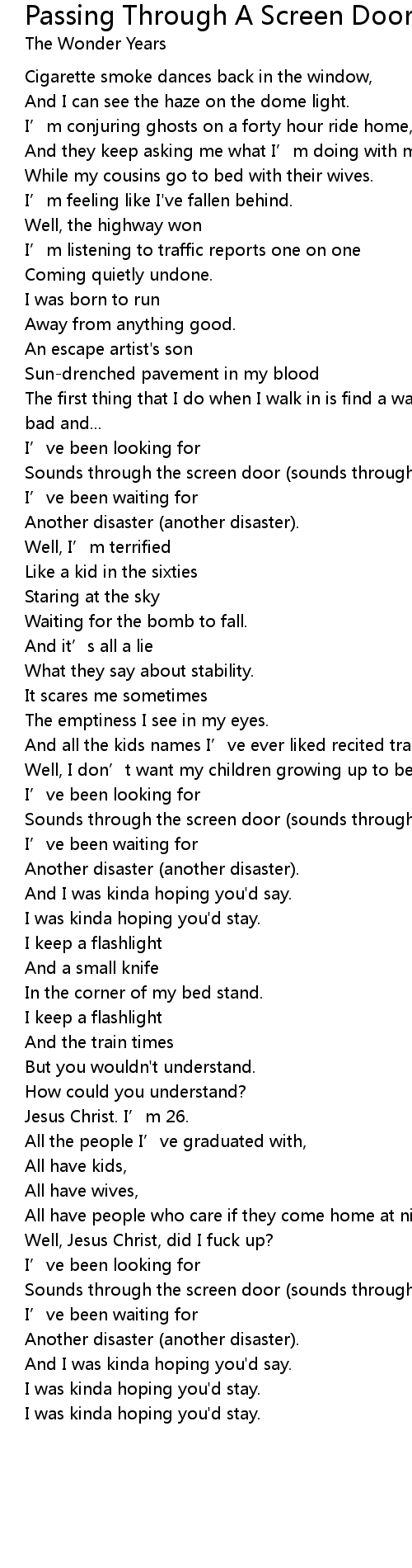 | Song | Passing Through A Screen Door |