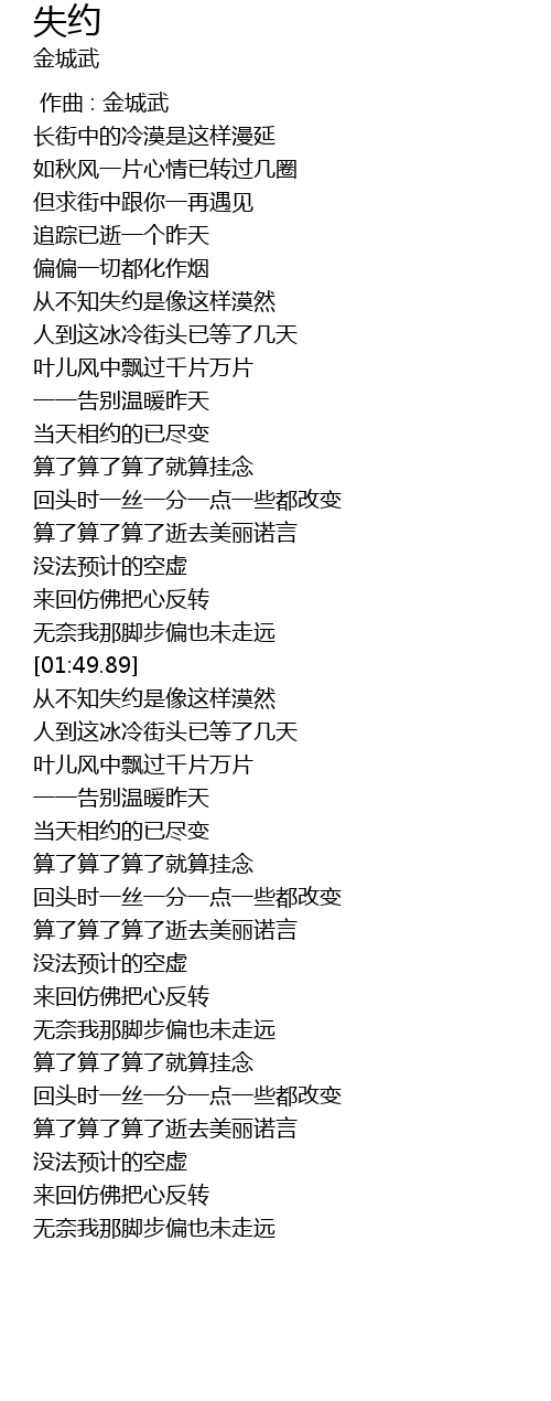 | [01:25.54] | 算了算了算了逝去美丽诺言 |