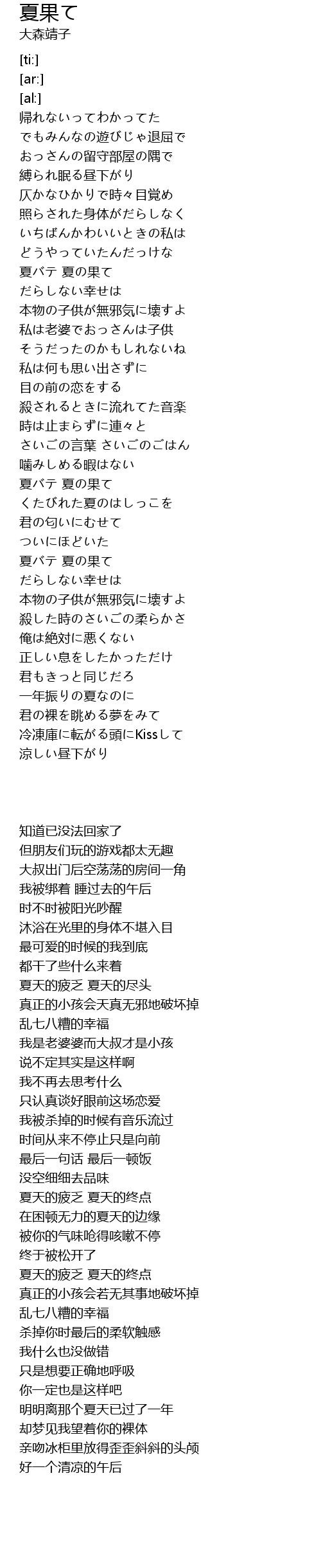 | [00:43.22] | 夏バテ 夏の果て |