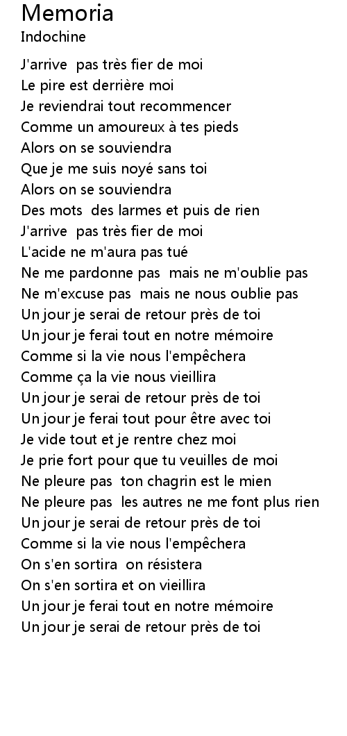 | [05:00.37] | Un jour je ferai tout en notre mémoire |