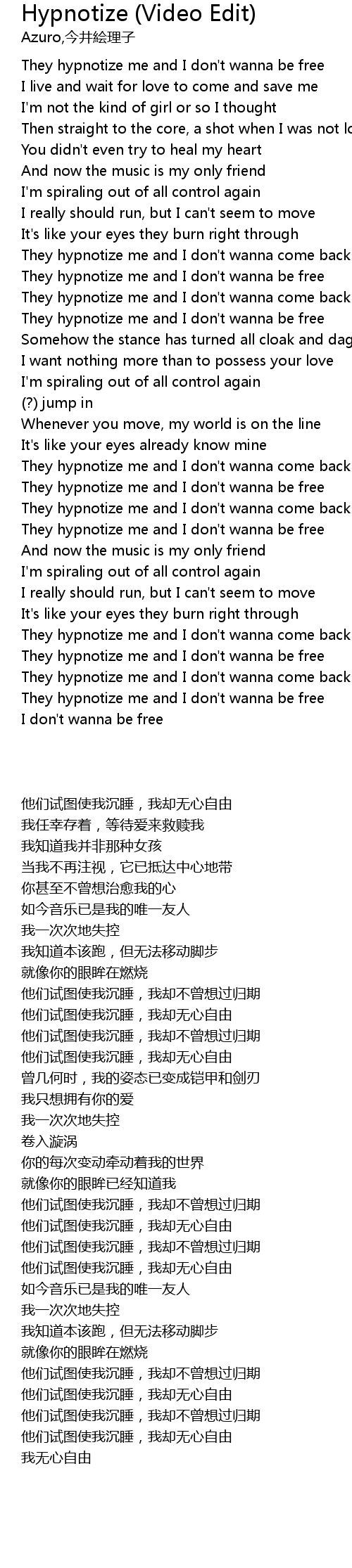 | [03:00.95] | They hypnotize me and I don't wanna be free |