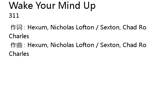 | [00:00.000] | zuò qǔ : Hexum, Nicholas Lofton Sexton, Chad Ronald Wills, Aaron Charles |