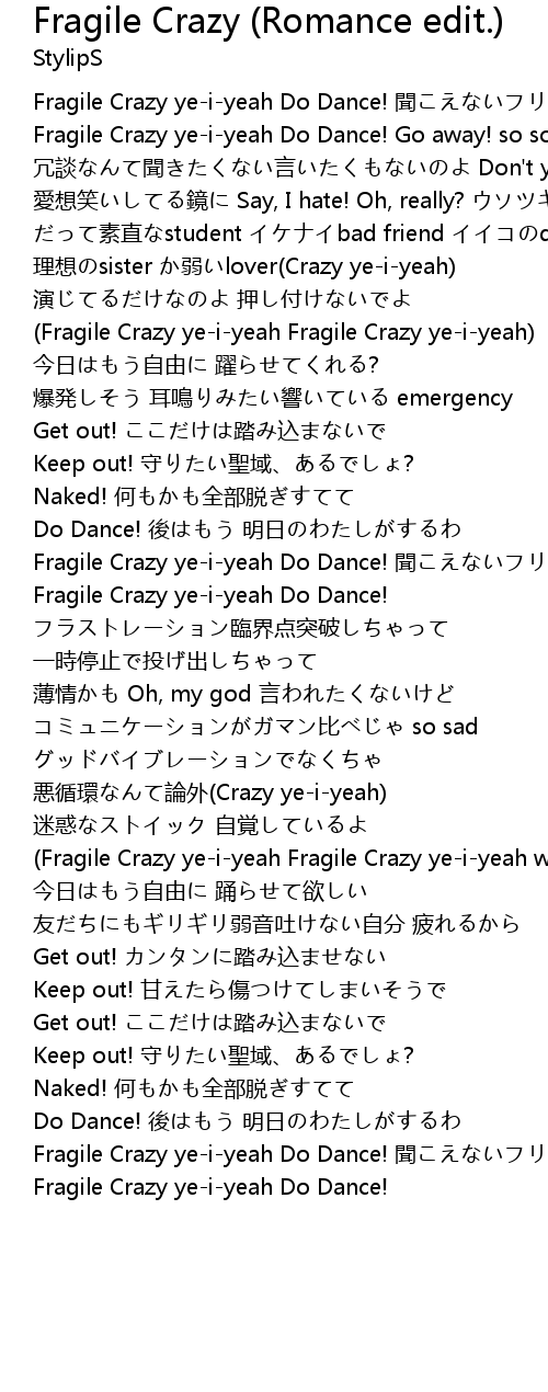 | Fragile Crazy ye-i-yeah Do Dance! Go away! so sorry♪ | |