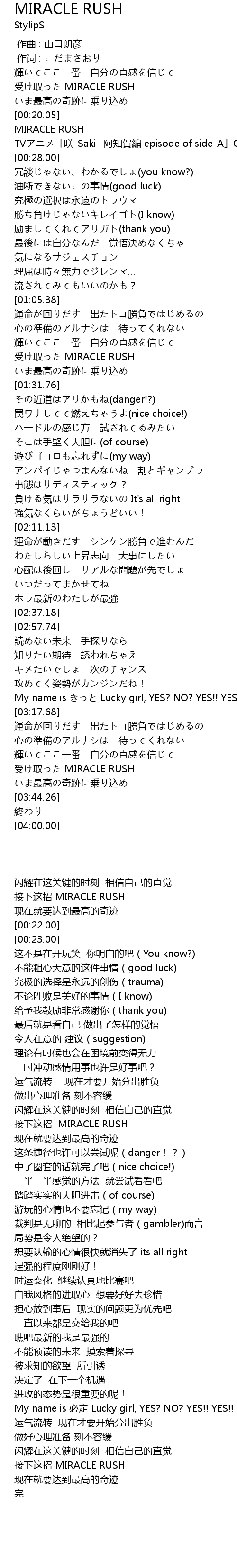| [00:22.00] | MIRACLE RUSH |