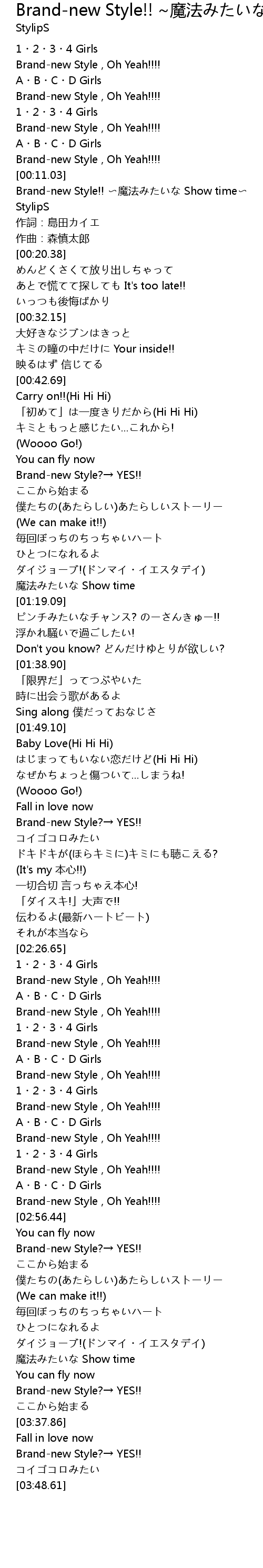 | [02:54.95] | Brand-new Style , Oh Yeah!!!! |