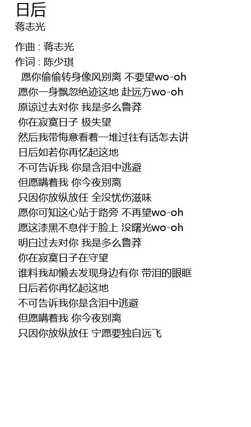 | 愿你偷偷转身像风别离 不要望wo-oh | |