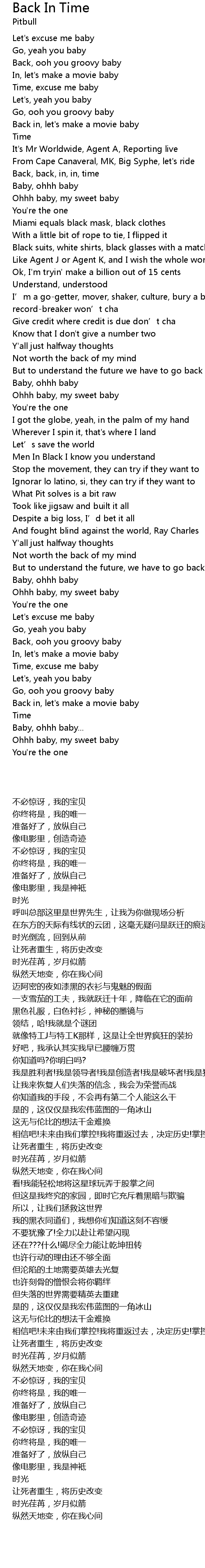 | [00:15.19] | It' s Mr Worldwide, Agent A, Reporting live |