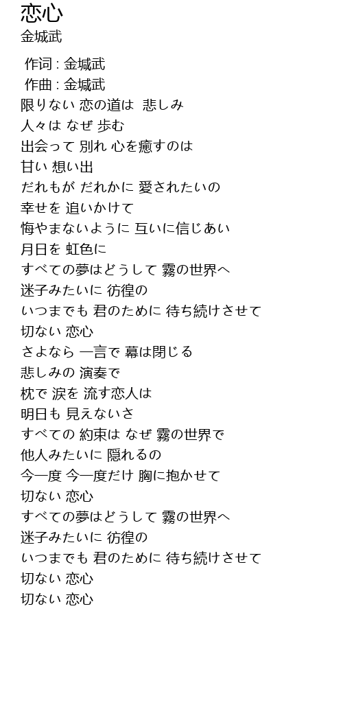 | [00:37.51] | 出会って 別れ 心を癒すのは |