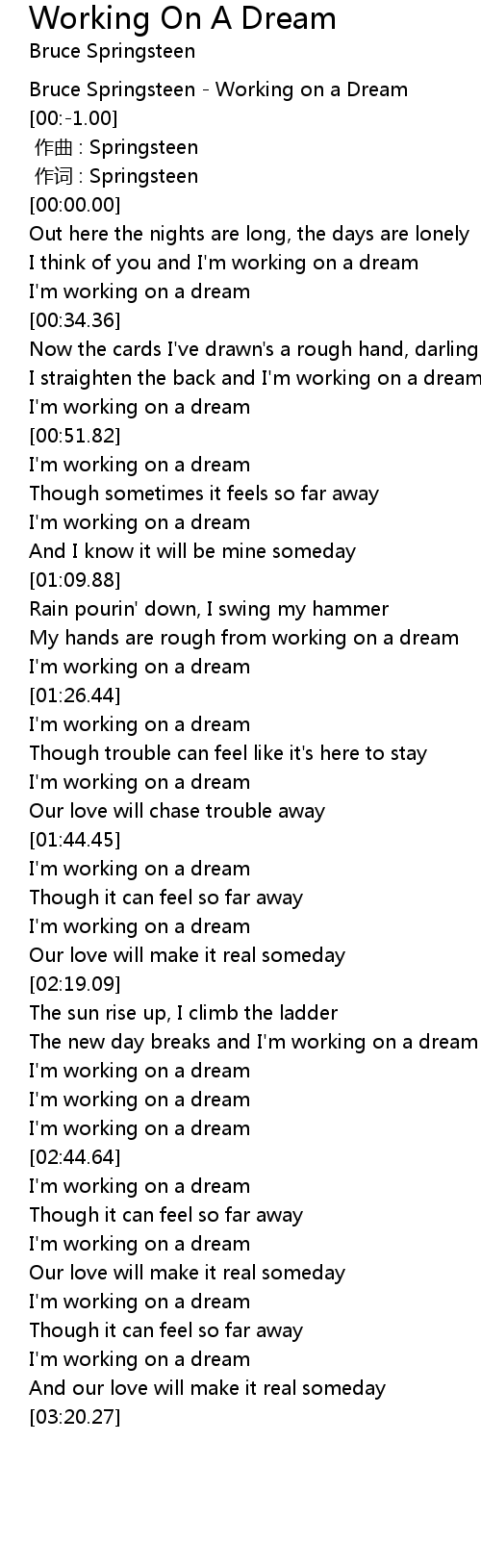 | [00:53.27] | I'm working on a dream |