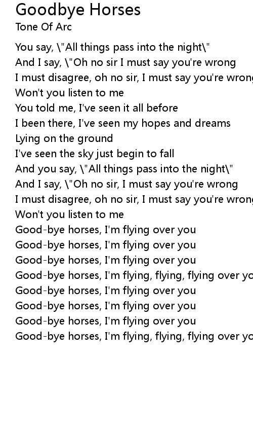 Good-bye horses, I'm flying, flying, flying over you |