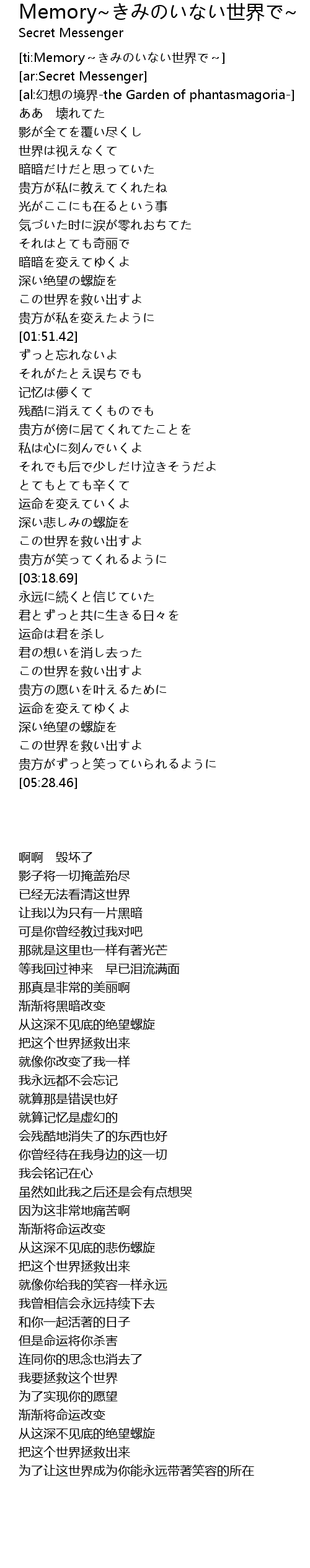 | [ti:Memory~きみのいない世界で~] | |