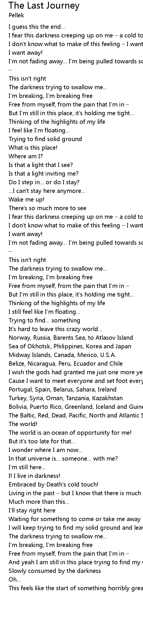 | I fear this darkness creeping up on me – a cold touch of death... of death... | |